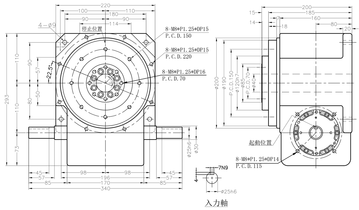 分割器规格(轴心距) |