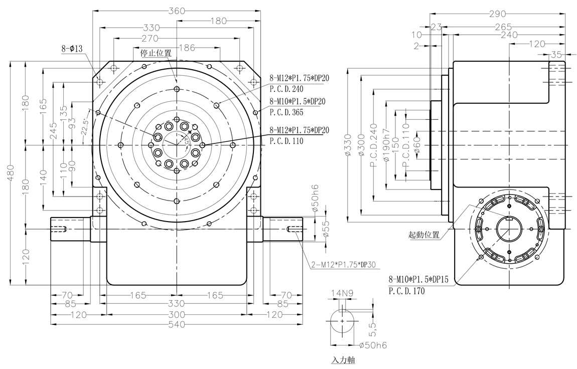 分割器规格(轴心距) |