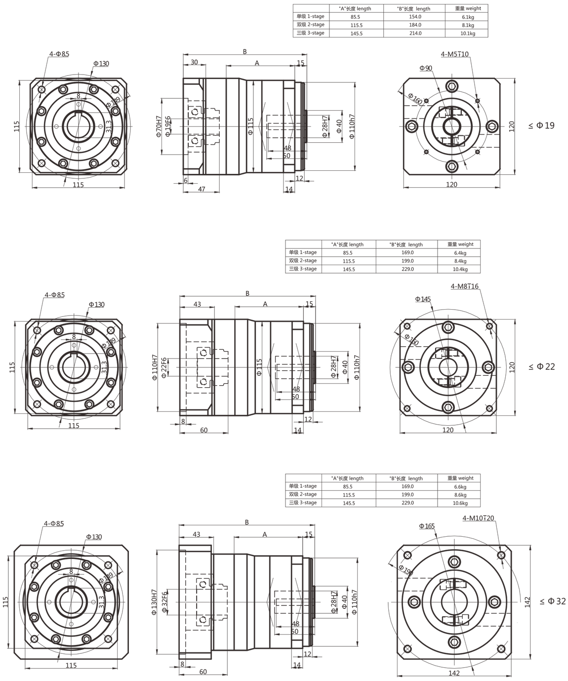 二级传动:15、16、20、25、30、35、40、50、70、100 |