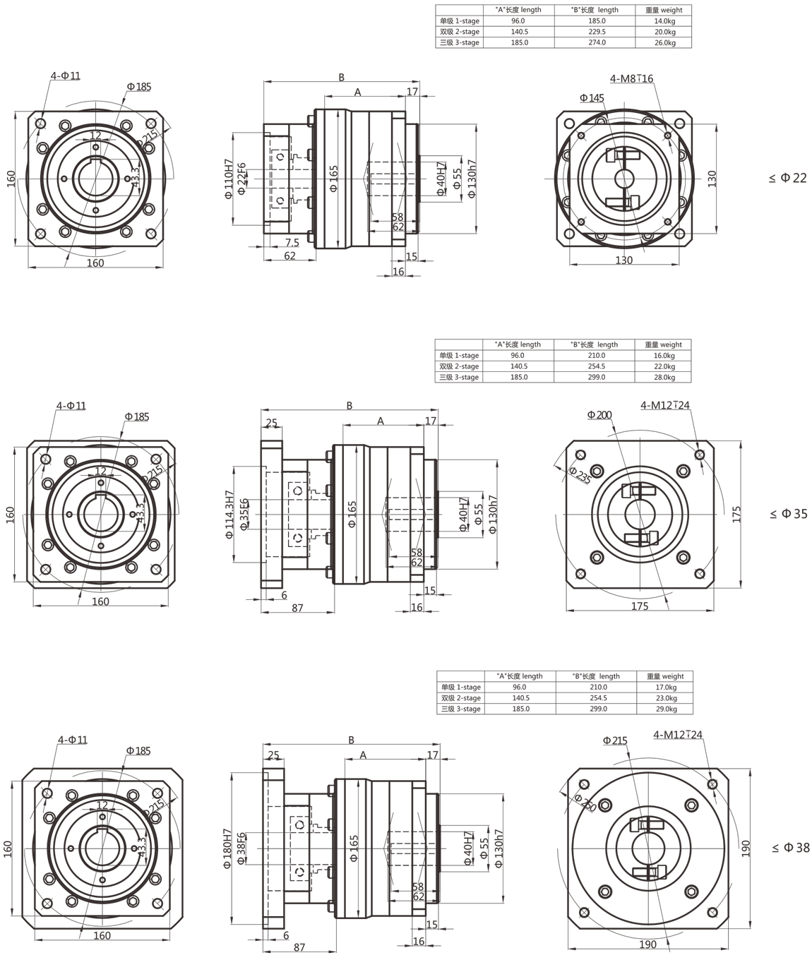 二级传动:15、16、20、25、30、35、40、50、70、100 |