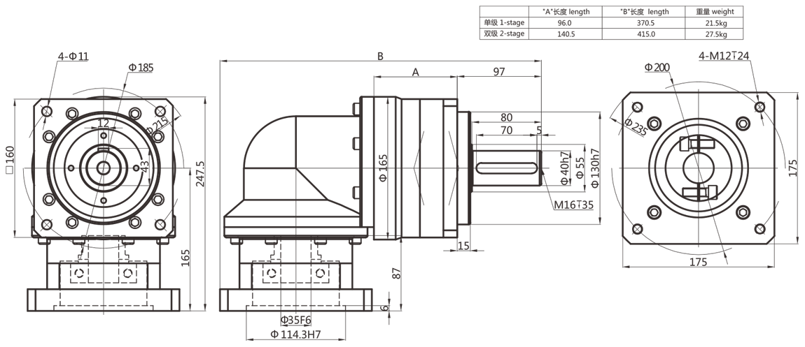 二级传动:15、16、20、25、30、35、40、50、70、100 |